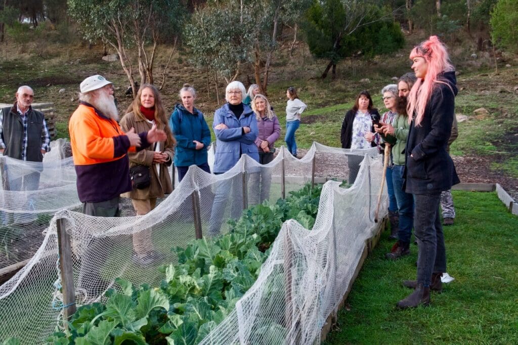 Picture: Ravenswood Neighbourhood House community leader Peter Richards, Hobart permaculture educator Hannah Moloney,24 Carrot’s Jo Dean, Costa and others.