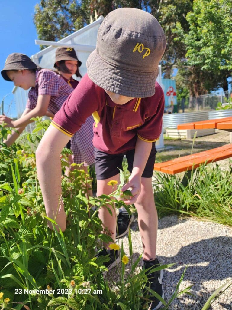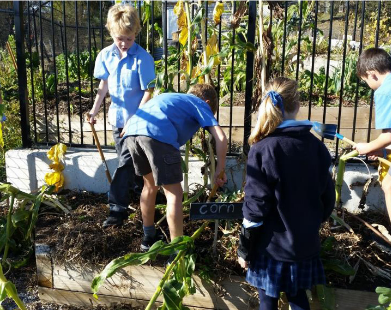 The garden has raised beds, a green house, habitat garden and is functioning as a kitchen garden for school learning, where produce is picked and cooked in kitchen programs within the school. Produce is also shared with families in the local community.